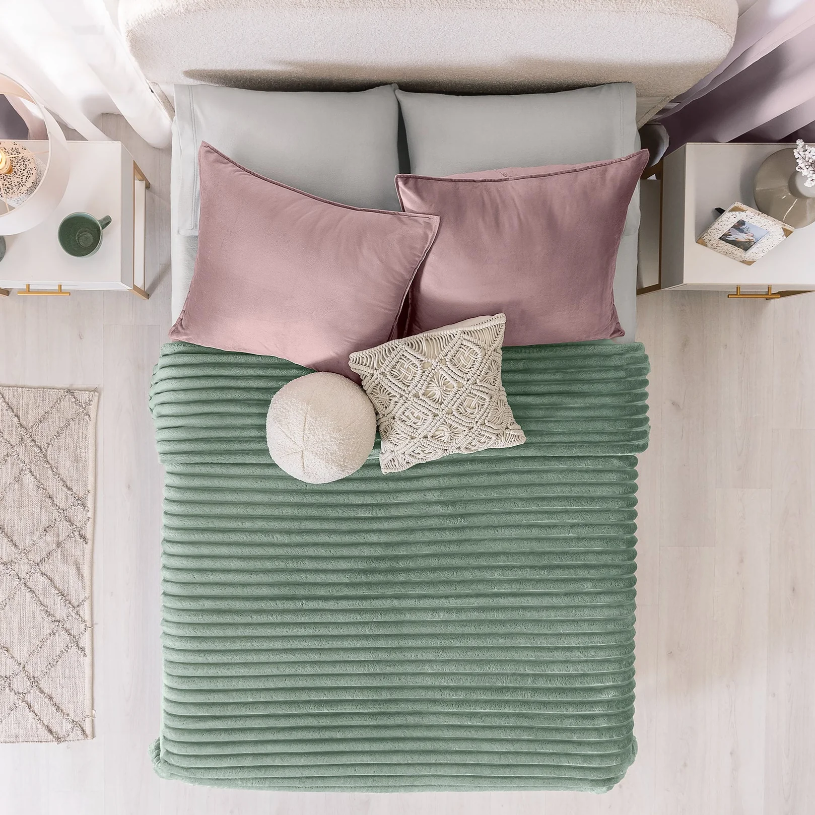 Cobertor con textura de franjas en relieve en sus dos vistas, súper suave por su textura Beauty Soft. Ideal para mantenerte calientito en cualquier época del año.